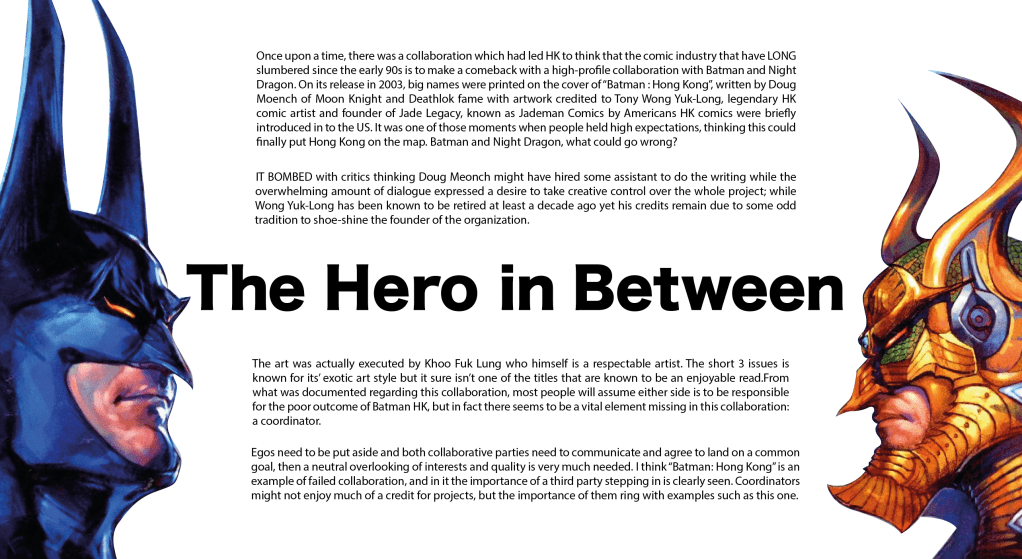 What I learnt from this is that : there needs to be a coordinator in between 2 super powers, I think it’s obvious by seeing the results that both comic houses barely even communicated with each other or maybe they refused to do so. Batman Hong Kong did become a classic, but only in the sense that it was a rare crossover of 2 seemingly unrelated publishers and the fact that it’s most likely not to happen again.