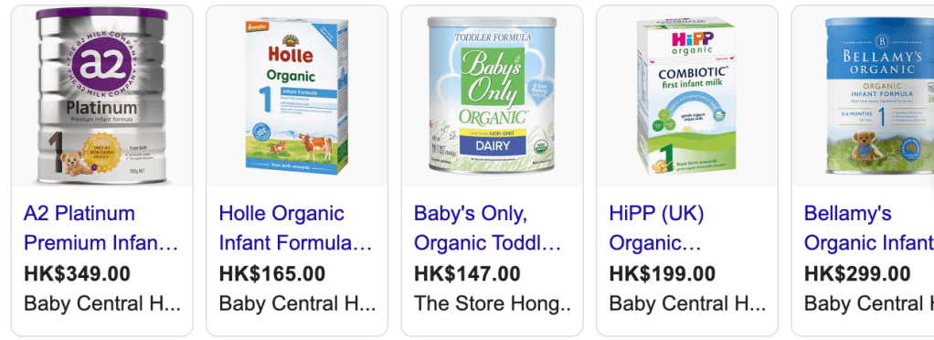 the many milk formulas available in HK
