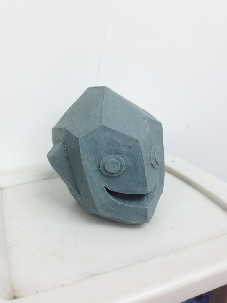 A head figurine to help me draw an odd shape.I remembered watching a making of video of some Disney production and there was footage of sculptors sculpting for the animators. Many years later I was faced with the problem of not able to draw a character from a certain angle, then it occurred to me to go bust out some clay.