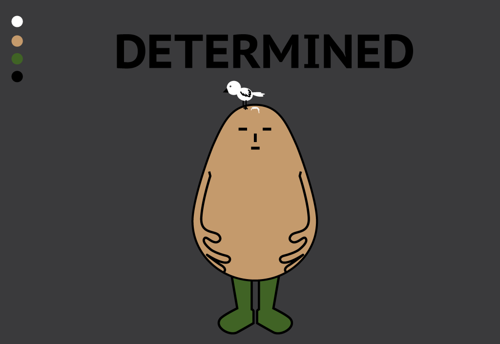 Kooky is a wacky, hyper clown of a guy. He doesn’t mean any harm and all, but might appear uncool and a bit too goofy for others’. His colors were inspired by the most well known, annoying clown in the world! (I keep my crazy at bay now, Id say i was a bit socially awkward during my teen years. But I after I learn to slow down more and just stay chill, the kookiness could be fed in to my graphic design work.)