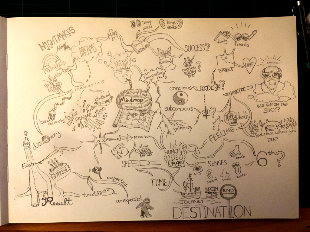 I thought I had it all planned out nicely…A mindmap of a mindmap! Thinking it was the perfect solution to deliver a line drawing (actually a whole bunch of line drawings) for this week’s task.
